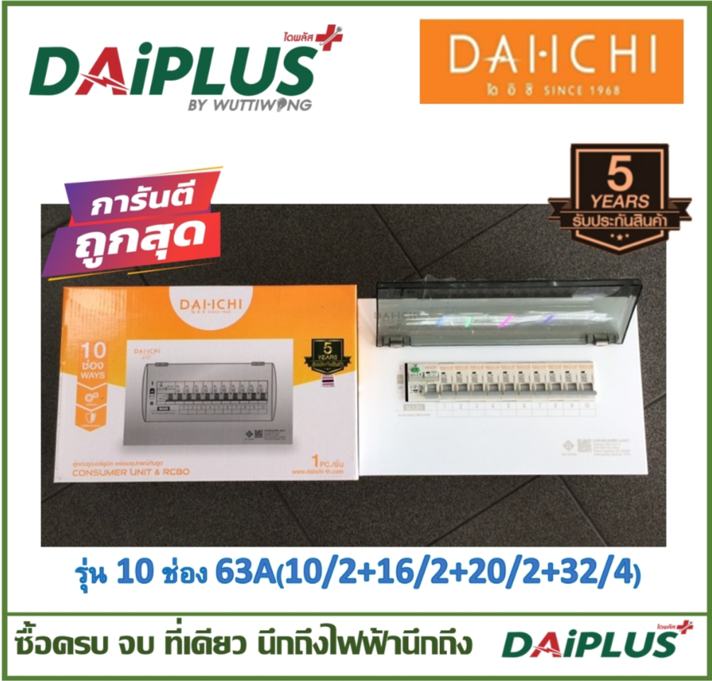 ตู้คอนซูมเมอร์ มีกันดูด ครบชุด พร้อมติดตั้ง DAI-ICHI (ไดอิชิ) รุ่น WISE (RCBO) (รุ่น 10 ช่อง 63A(10/2+16/2+20/2+32/4))