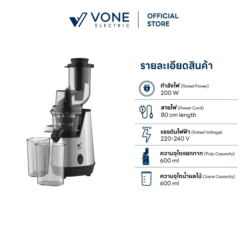 [VONE] เครื่องสกัดน้ำผักและผลไม้แบบสกัดเย็นรอบต่ำ Cold press juicer ขนาด 600 มล. [CJ0301]