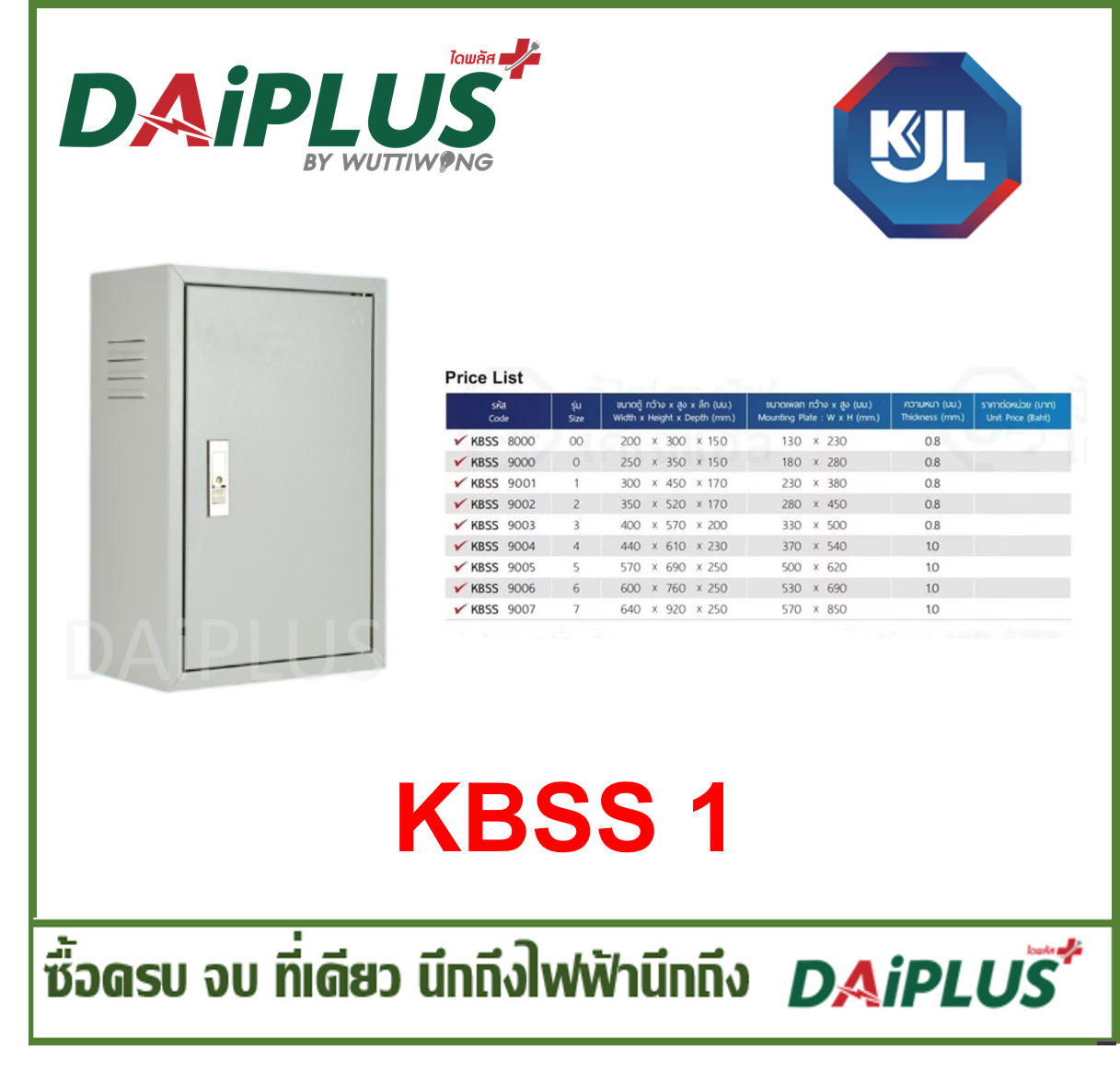 ตู้ไฟ แบบธรรมดา รุ่น KBSS ยี่ห้อKJL (KBSS 1)