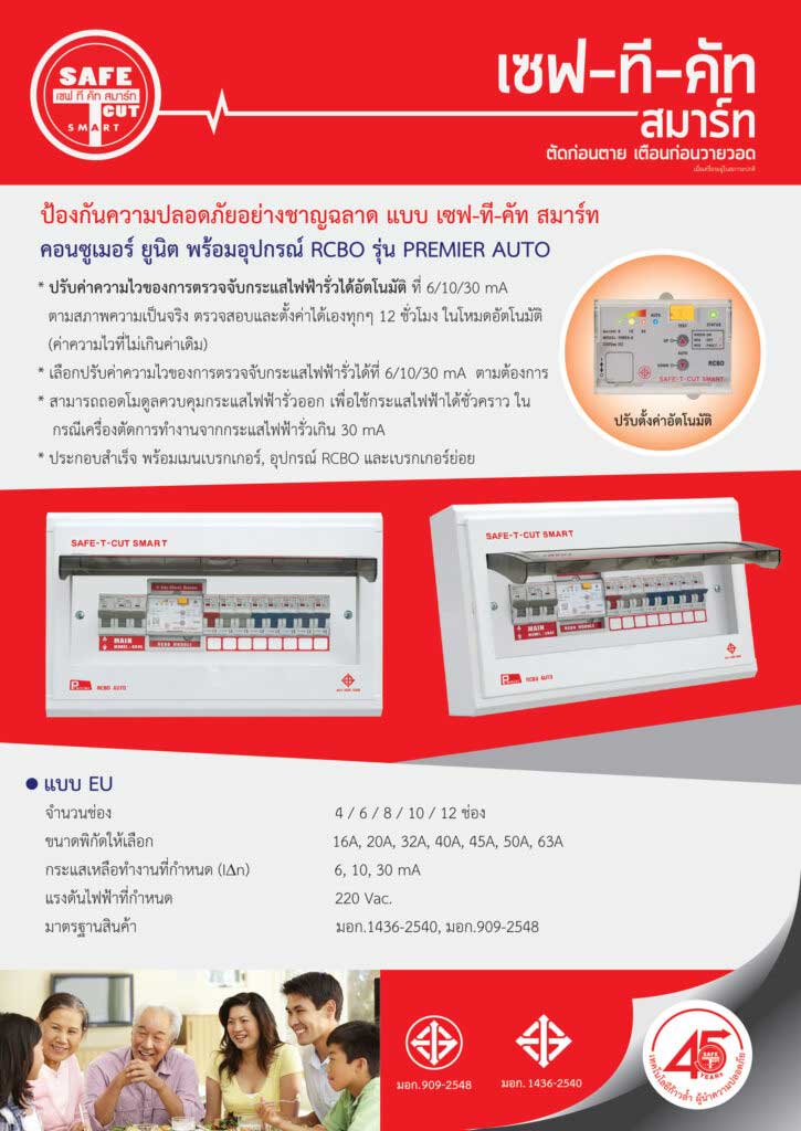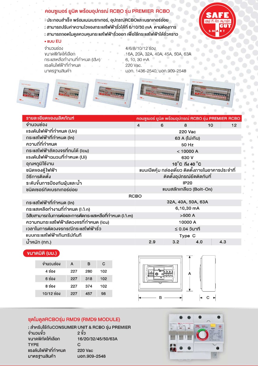 ตู้ควบคุมวงจรไฟฟ้าพร้อมอุปกรณ์ป้องกันไฟฟ้ารั่วลงดินอัตโนมัติ (RCBO) สำหรับระบบไฟฟ้า 1เฟส