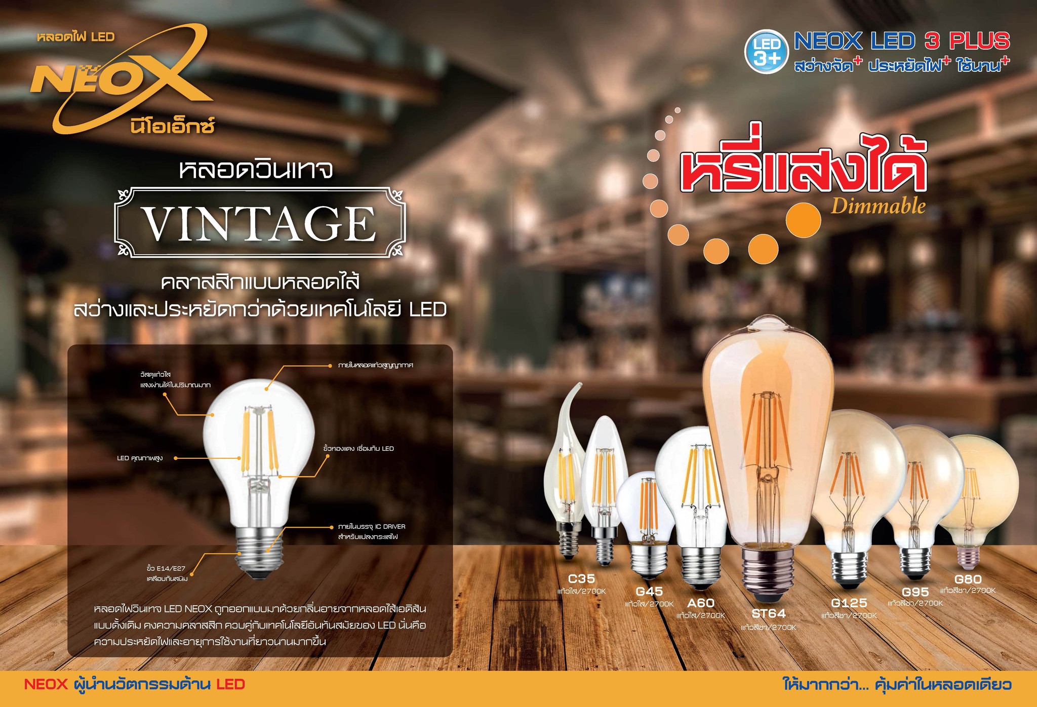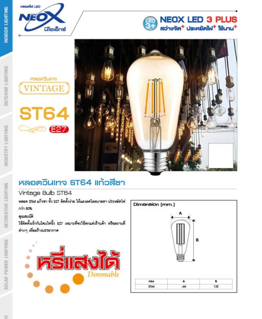 NEO-X หลอดไฟวินเทจขนาด 4W ST64 ขั้ว E27 แก้วสีชา (งานประดับตกแต่ง)