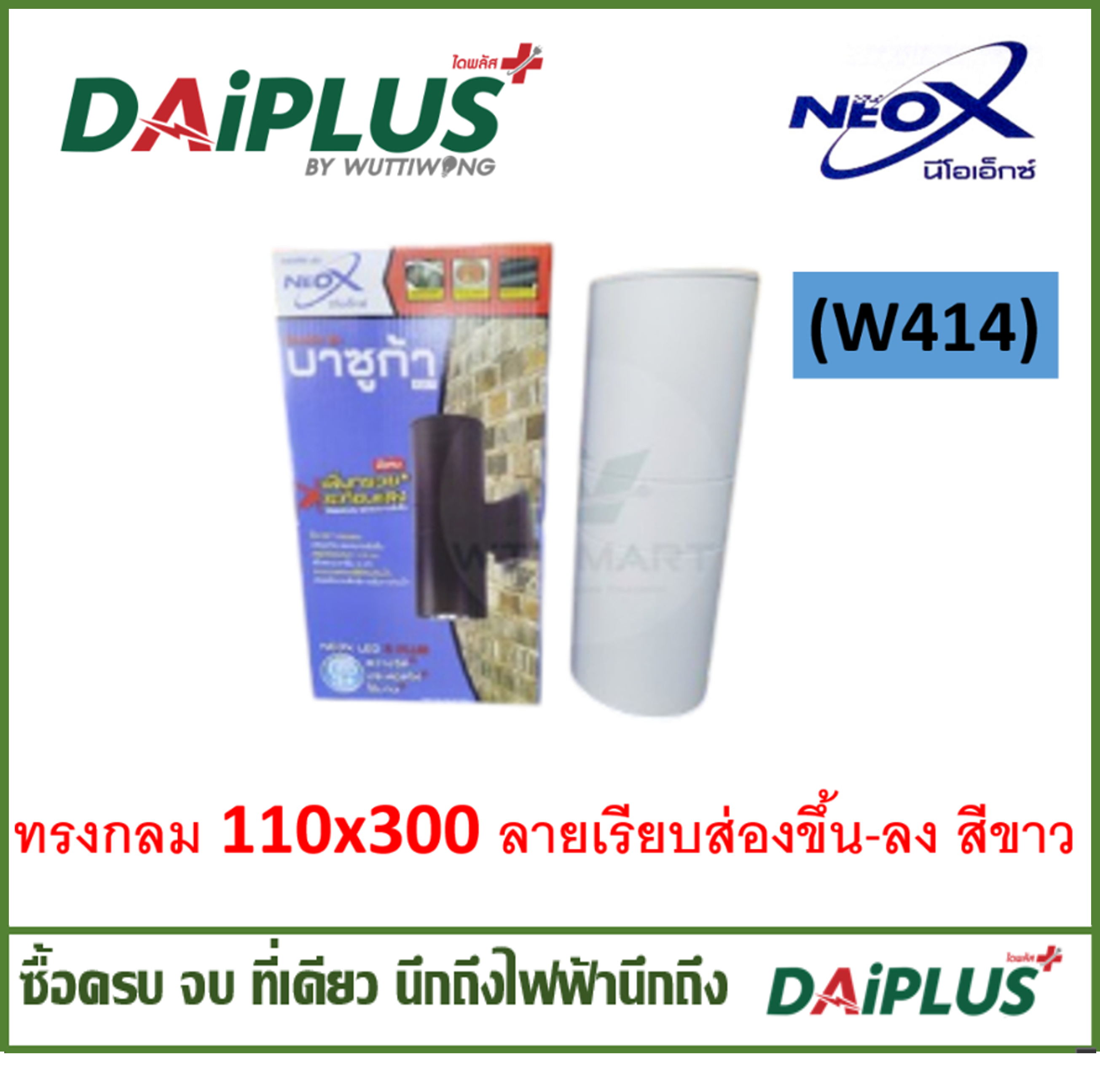 โคมผนัง รุ่น บาซูก้า โคมไฟ ขั้วE27 NEO-X (ทรงกลมขาว 110x300 ลายเรียบส่องขึ้น-ลง (W414))