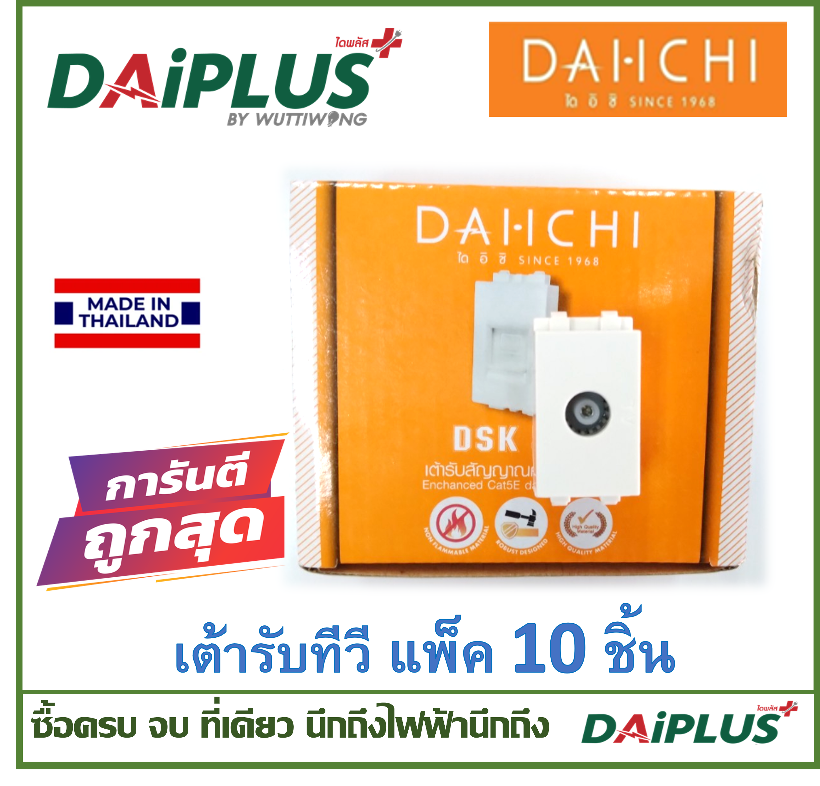 สวิตซ์ เต้ารับ หน้ากาก มอก.แท้ ไม่ลามไฟ ผลิตในไทย (กล่อง 10ชิ้น) DAI-ICHI (ไดอิชิ) (เต้ารับทีวี)