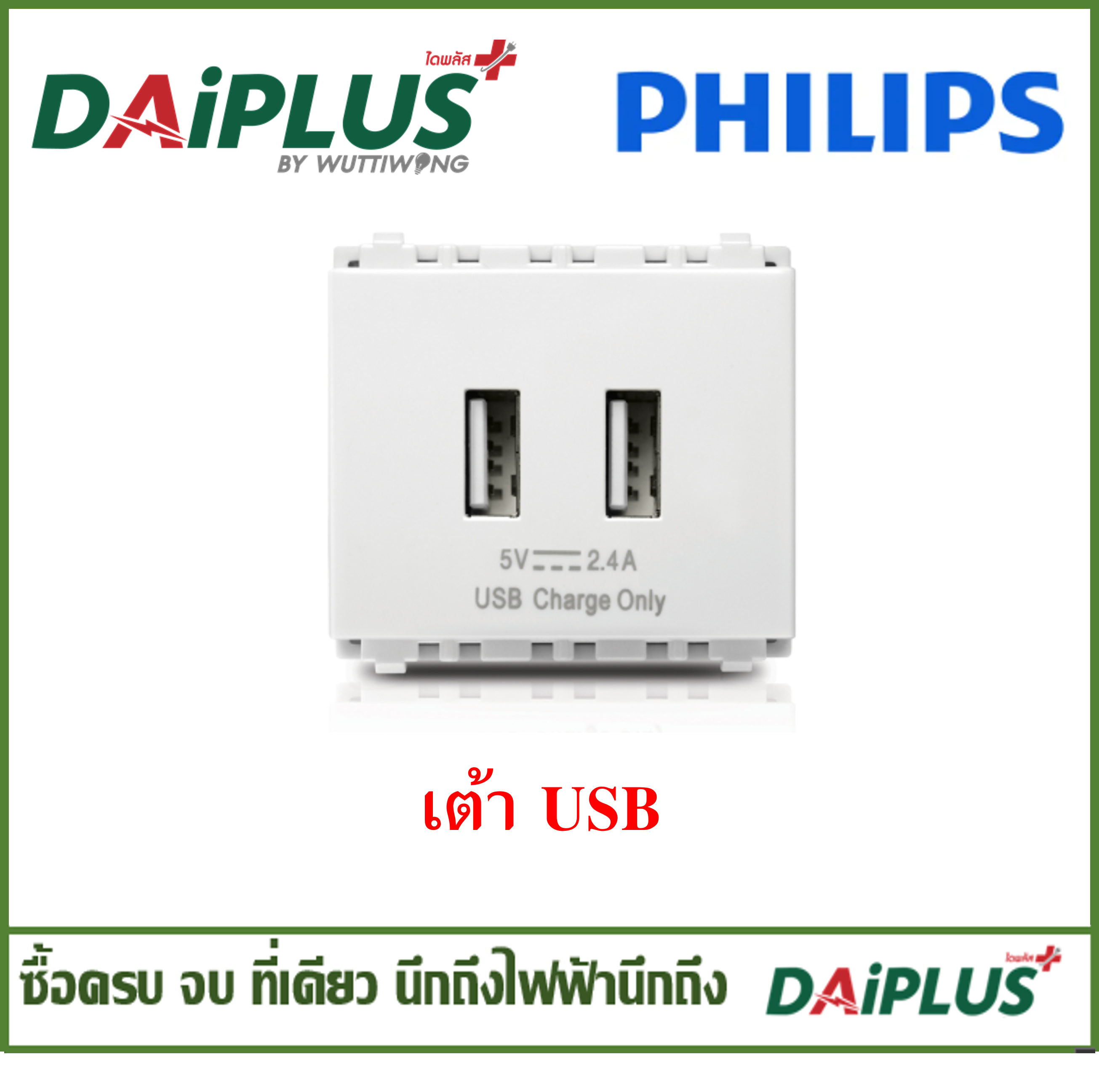 PHILIPS ปลั๊ก สวิตซ์ เต้ารับ หน้ากาก สีขาว รุ่นลีฟ LeafStyle (เต้าUSB)
