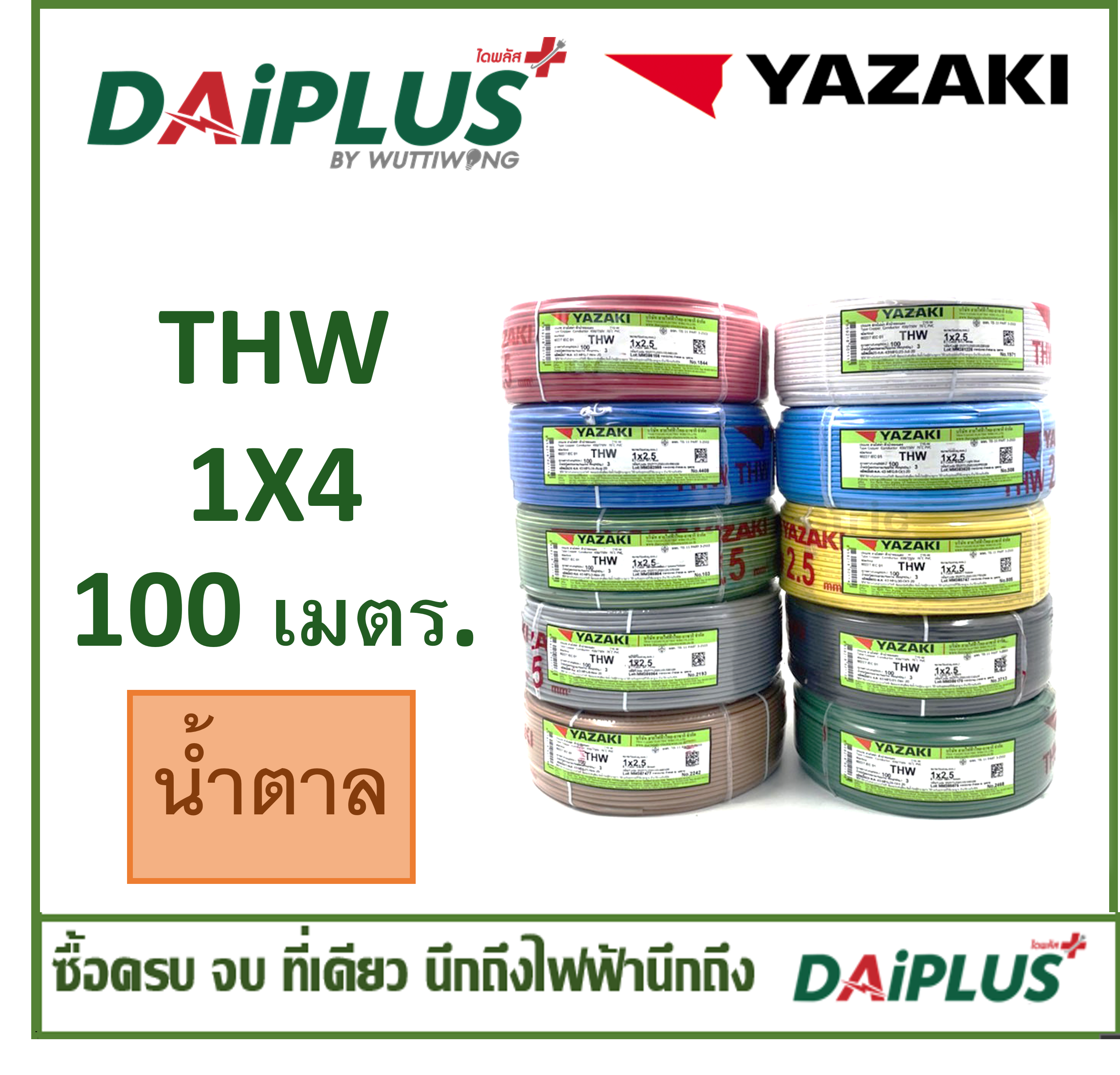 YAZAKI สายไฟ THW เบอร์ 1x4 ขด 100 เมตร